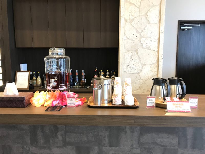 カウンターにはウェルカムドリンクが並べられていますが、なんとビールまでありました!
