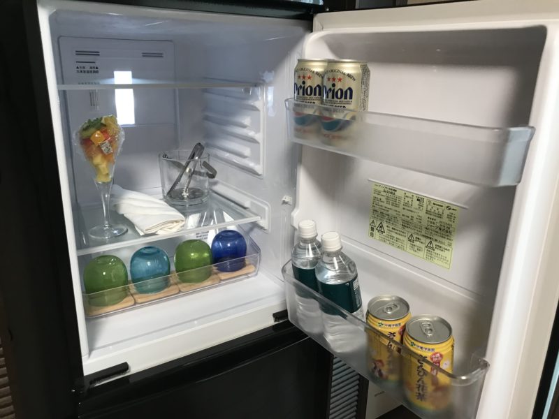 冷蔵庫にはウェルカムフルーツと自由に飲んでいいビールやお茶がありました!