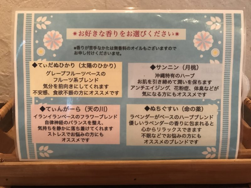 島の天然植物成分を使用したものなど、4種類の中から好きな香りを選べます♪