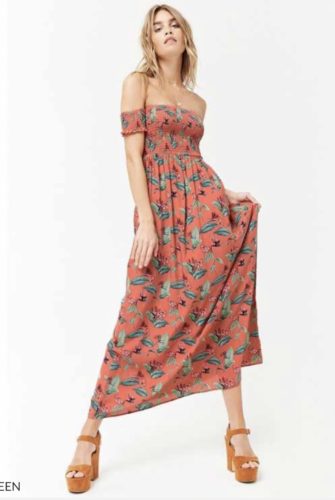 FOREVER21フラワーオフショルダーマキシワンピース