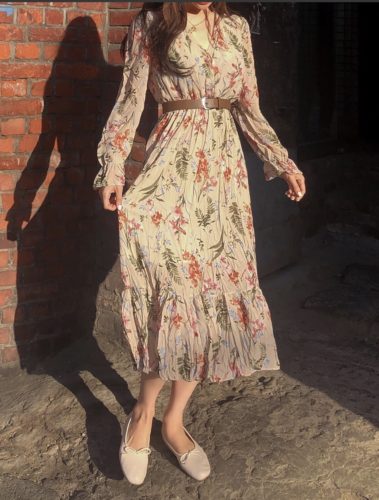 MIIAミニフラワープリーツマキシワンピース
