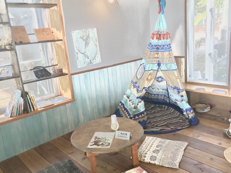 おしゃれなティピに様々な絵本やおもちゃが置いてあり自由に使うことができます。