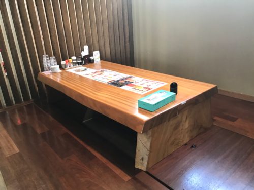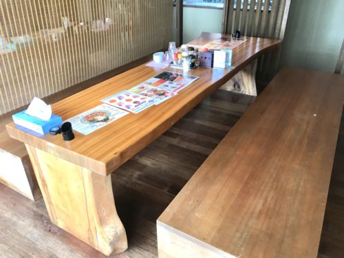 大人数でも座れる長机タイプの席。