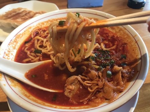 ひーーーっ!スープも真っ赤で辛そう!に見えますが、2辛はそんなでもありません。