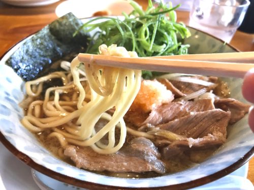 スープも背脂が浮いているのでこってり系かと思いきや