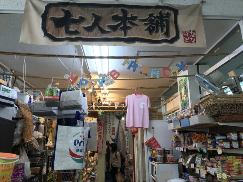 ユーグレナ石垣港離島ターミナルの正面入り口から入って左奥に進むとある七人本舗(ななぴぃとほんぽ)は、Tシャツなどのお土産物から飲み物・お弁当・軽食などを取り扱っている商店です。