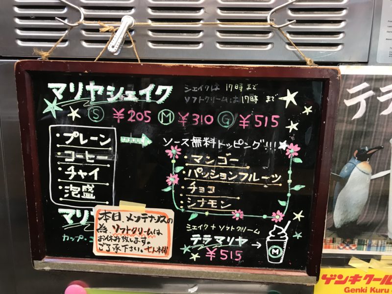 そんなターミナル内にあるのが、知る人ぞ知る、ここでしか食べられない七人本舗で販売されているマリヤ乳業が製造するマリヤシェイク!